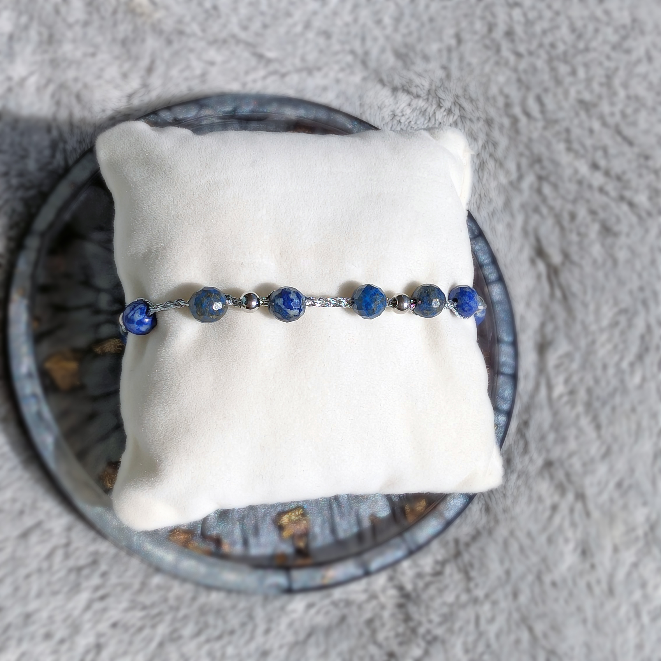 Bransoletki są wykonane ręcznie na cienkim szydełku z nici metalizowanych i kamieni naturalnych lub szklanych koralików. Posiadają elementy ze stali chirurgicznej (zapięcia, przekładki).