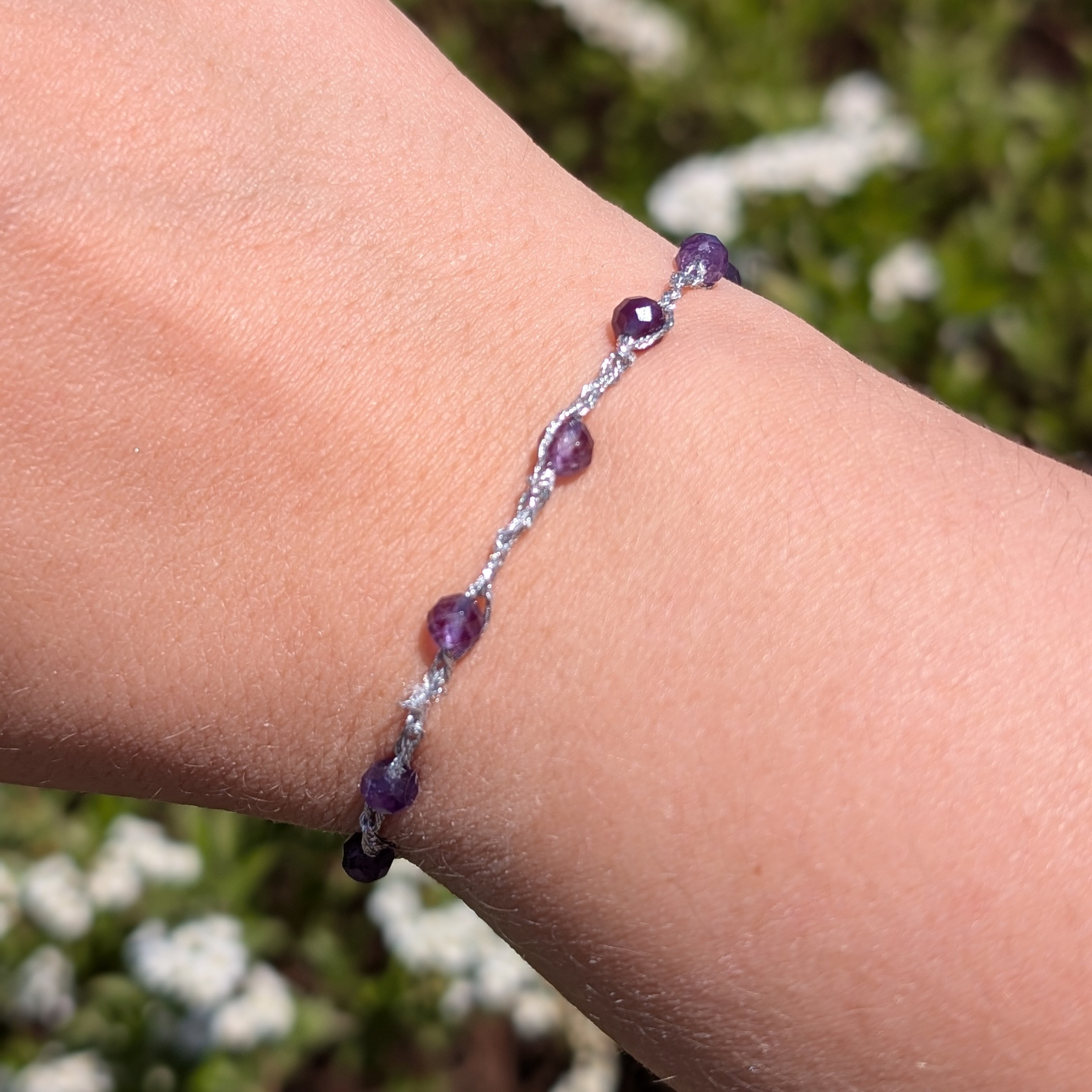 Bransoletka Szept (srebrna, ametyst, 16cm)