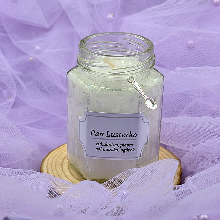 Ta świeca jest jak powierzchnia lustra – chłodna i fascynująca. Eukaliptus nadaje mroźności, ogórek świeżości, pieprz ostrości a sól łączy całość w bardzo ciekawą kompozycję.